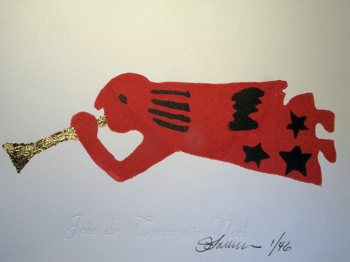 Fourth pass - light emboss image of trumpet, then apply gold leaf
